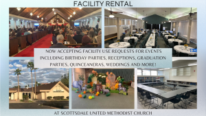 Scottsdale UMC has some office space available for long term lease available. If this is of interest to you, please send a proposal by email to:
